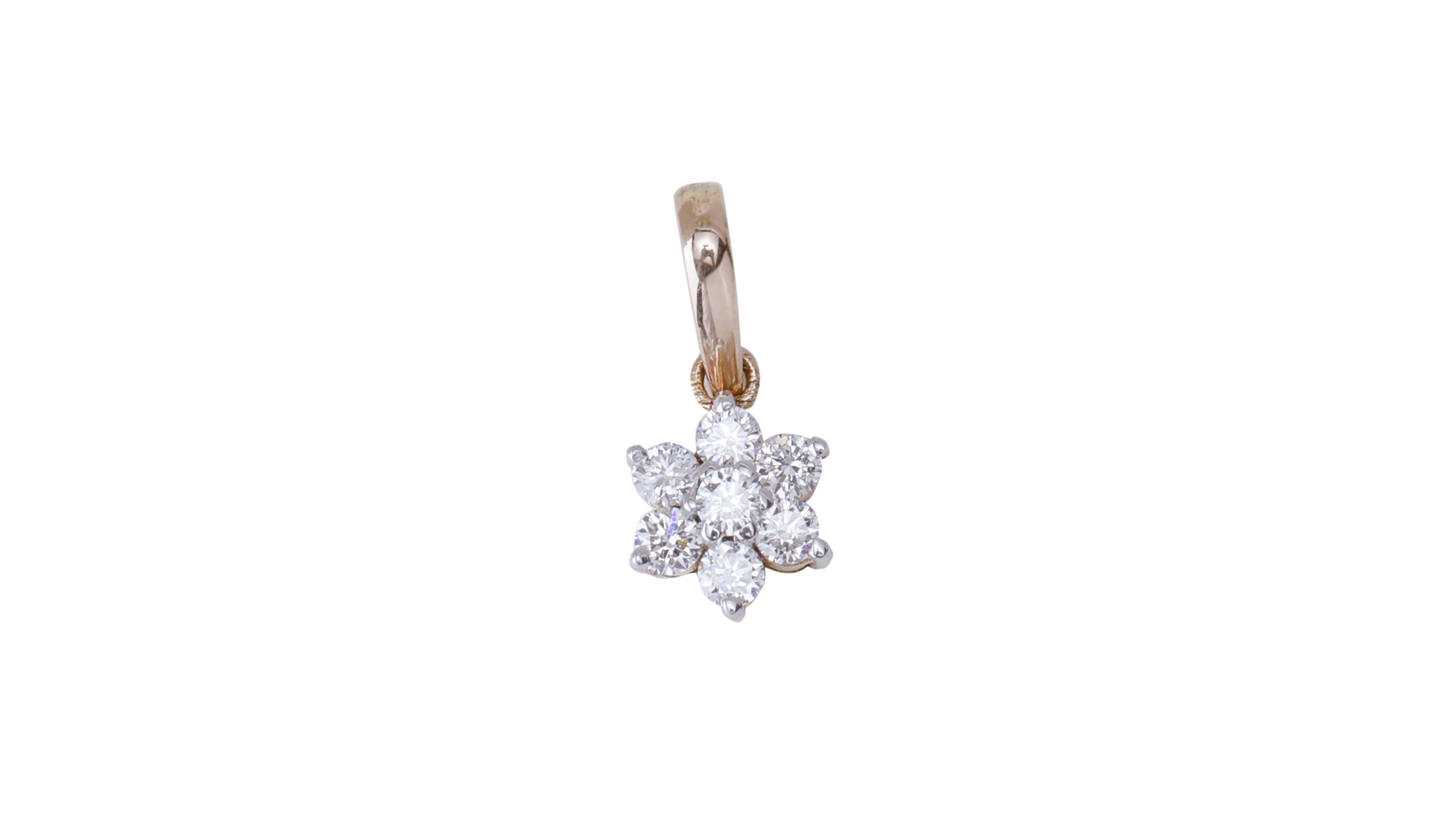 Crafted in a charming floral design, this pendant features a cluster of brilliant-cut diamonds arranged in a symmetrical petal flower. Set in a warm gold, each diamond sparkles with exceptional clarity and brilliance. The polished bail adds a refined finish, making it easy to pair with any chain. Elegant yet timeless, this pendant exudes grace and sophistication. Perfect for everyday elegance or special occasions, it makes a thoughtful gift or a treasured personal piece.